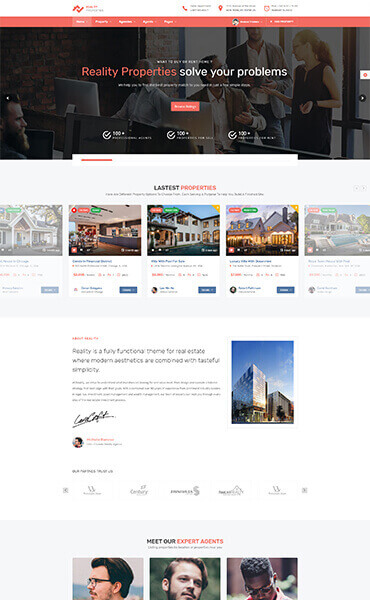 Reality is a is a professional WordPress Theme for real estate agents and companies. This theme will take care of managing your properties system which allows you to own and maintain a real estate marketplace, coordinate your agents, accept submissions, as well as creating beautiful landing pages fast and easy via Visual Composer page builder or drag & drop native Customizer.
